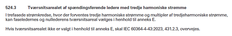 I del 5-52 finder vi to nye punkter samt et nyt anneks. Her er det interessante at man ved hjælp af en tabel i det nye anneks E mere detaljeret kan vælge kvadrat på ledere, når det handler om harmoniske strømme.